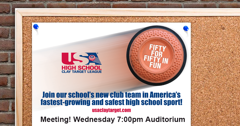 The USA Clay Target League Student Athlete Recruitment Kit will help you gain attention and attract students to your new team. The Student Athlete Recruitment Kit contains: